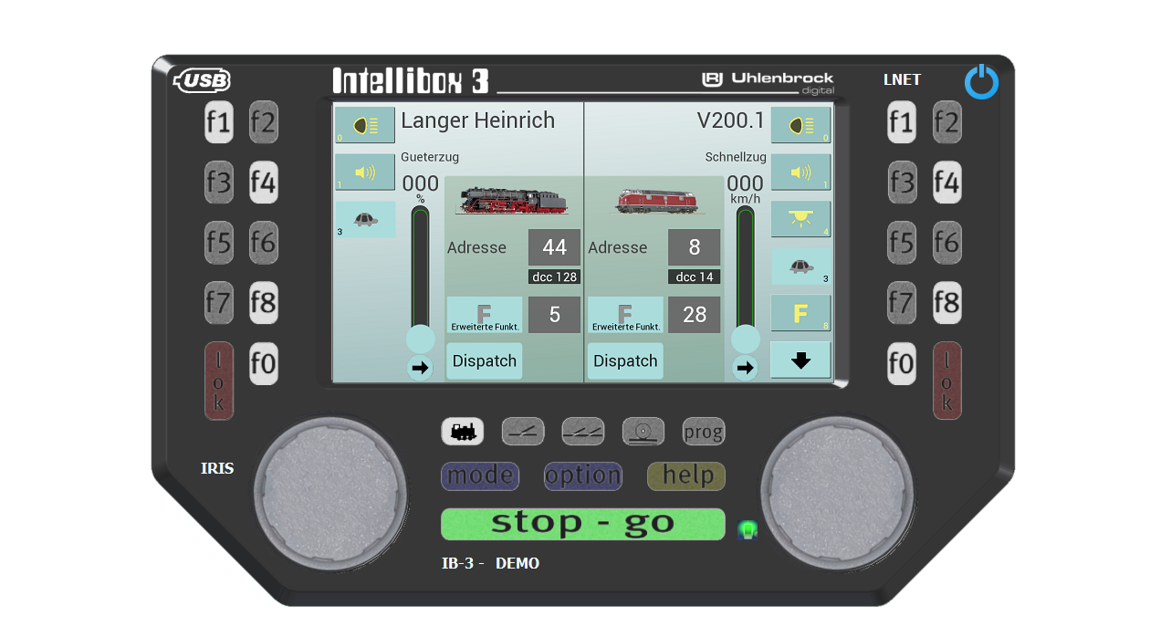 Im Erscheinungsbild sticht das große, hochauflösende Farbdisplay mit Touchfunktion hervor. Mit den neuen Bedienmöglichkeiten haben wir das Bedienkonzept strikt fortgeführt und vereinfacht. Wer die Intellibox II kennt wird sofort mit der Bedienung der Intellibox 3 zurecht kommen.